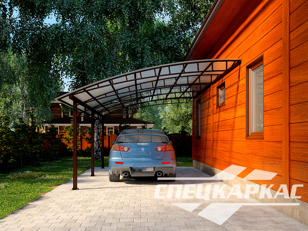 Навес «Дако» позволяет сохранить сухость и чистоту подъездной дорожки и защиту транспорта от мусора и погодных условий. Дизайнерское решение обеспечивает экономию пространства – навес не является отдельным строением, скорее это продолжение архитектурной композиции дома. Металлоконструкция выполнена согласно условиям эксплуатации в климате европейской части РФ: устойчива к порывам ветра, не ржавеет от избытка влаги, проста в уходе. Покрытие из поликарбоната позволяет выбрать единое цветовое решение для кровли дома и навеса. Материал устойчив к нагрузкам, легко сохраняет первоначальные свойства в заморозки и жару, пожаробезопасен.